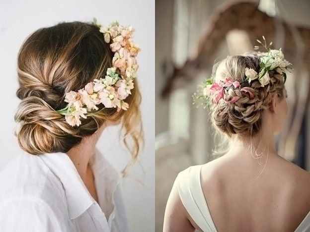Цветы в свадебной прическе: красиво и элегантно.